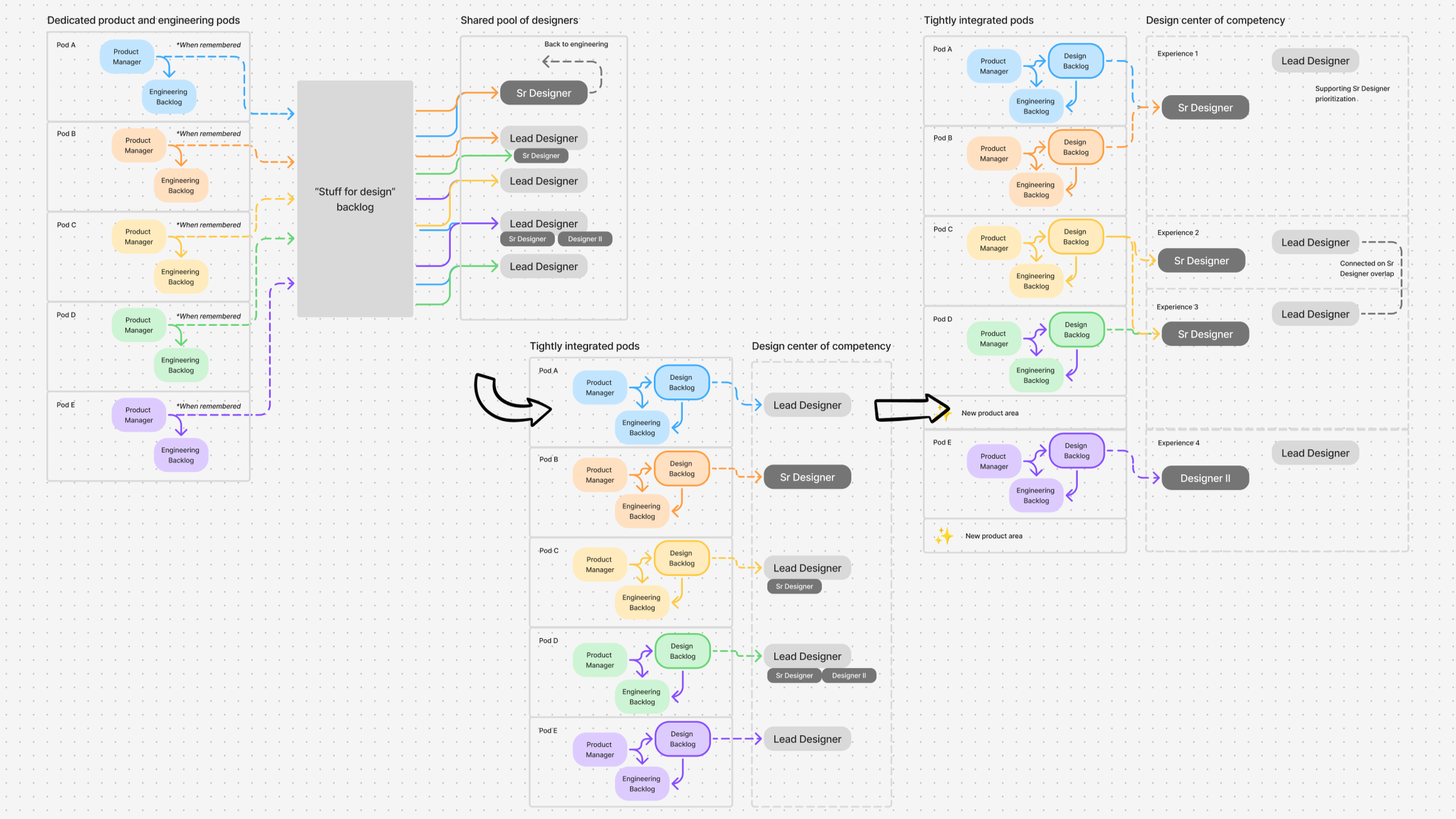 Restructuring design from a shared pool into accountable, experience-led teams